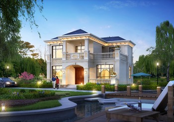 • 二層小別墅外觀圖片,別墅圖紙,外觀時尚,布局簡單實用,挑空的客廳設計
