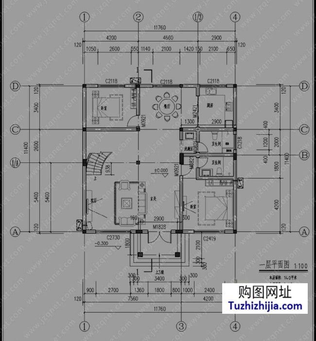 圖紙編號:E2202 占地面積:140平方米(尺寸/戶型可定制)