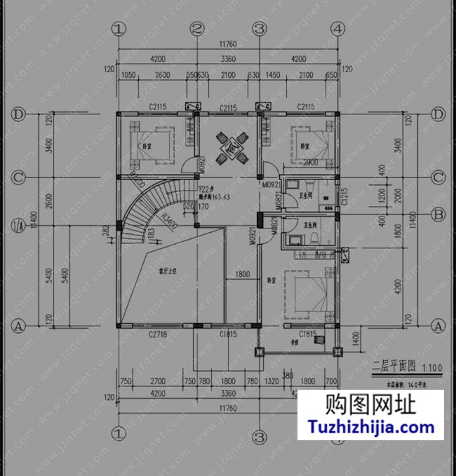 140平方米農(nóng)村二層別墅設(shè)計圖,11.7x11.4米