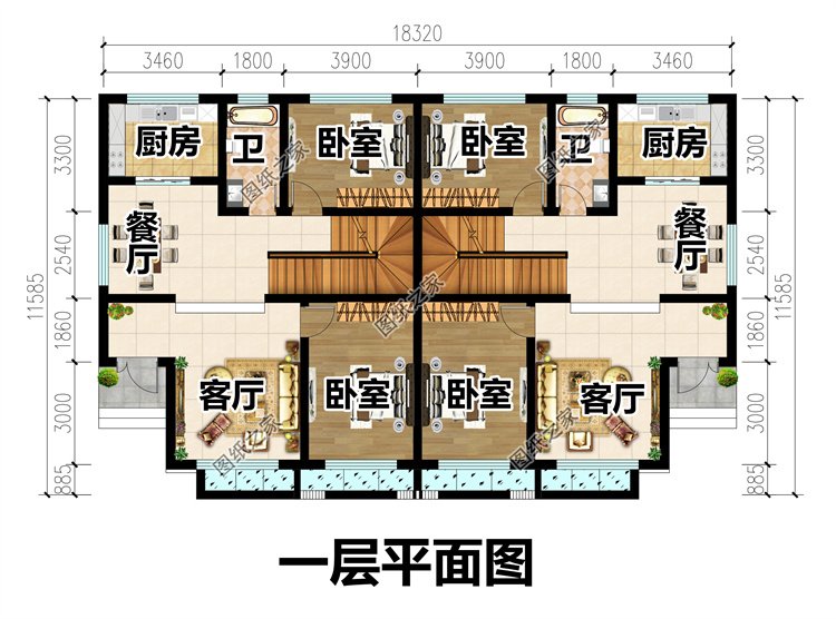 • 農(nóng)村一層雙拼別墅設(shè)計(jì)方案,豐富的室內(nèi)空間配置,滿(mǎn)足您的生活起居
