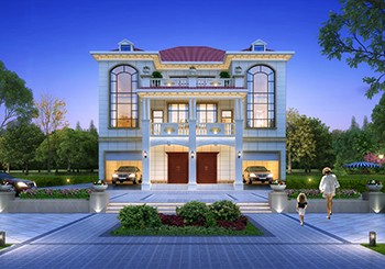 • 帶電梯的農(nóng)村歐式雙拼三層豪宅別墅設計圖,樓梯電梯共用
