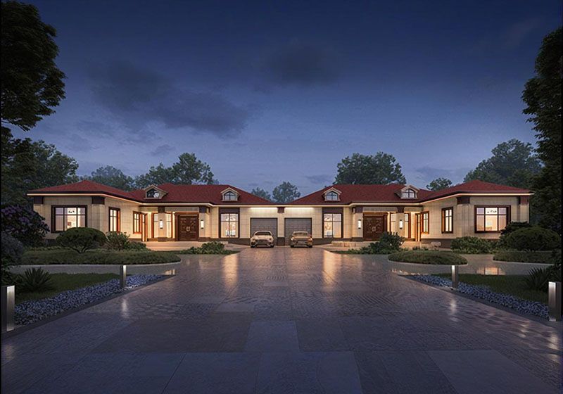 • 自建房共堂屋雙拼別墅設計圖方案,三層挑空復式戶型