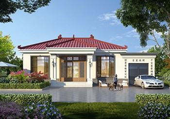 圖紙介紹:主屋不設(shè)廚房的平房設(shè)計(jì)圖,中式風(fēng)格,低調(diào)建房精致生活,別墅外立面以灰色面磚為基礎(chǔ),白色外墻真石漆搭配鐵紅色掛瓦坡屋頂,色彩自然流暢,有層次感。門庭大氣,兩根羅馬柱有著強(qiáng)烈的入戶儀式感。通過門廊入戶到達(dá)待客空間,兩側(cè)共設(shè)計(jì)有兩間臥室。主建筑沒有設(shè)計(jì)廚房,通過餐廳的側(cè)門可以直達(dá),廚房等配套空間可以設(shè)計(jì)在此,也可以根據(jù)家庭的需求,把臥室改為廚房。